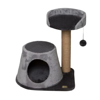 Der Europet Kratzbaum TREND PALM deckt alle Aspekte ab, die im Leben Ihrer Katze wichtig sind. An dem Stamm kann gekratzt werden, und auf der weichen Plüsch-Liegefläche oder im Häuschen schläft es sich herrlich. Der Kratzbaum hat auch einen Spielball mit Gummiband, sodass die Katze nach Herzenslust spielen kann.