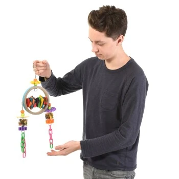 Spielzeuge zu entwickeln, welche die Intelligenz der Vögel fördern und fordern, die gut verarbeitet und doch günstig im Preis sind. Hauptbestandteil dieser Spielzeug-Kollektion ist Acryl,