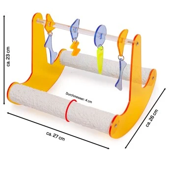 Eine Papageien-Wippe aus Acryl ist ein lustiges und unterhaltsames Spielzeug für Papageien. Die Wippe besteht aus einem Acryl-Rahmen mit zwei Sitzstangen, die sich bewegen und schaukeln lassen, wenn der Papagei darauf sitzt oder spielt. Die Wippe ist stabil und sicher und eignet sich für Papageien jeglicher Größe. Sie ist auch leicht zu reinigen und pflegeleicht. Mit der Papageien-Wippe aus Acryl können sich Ihre Vögel auf spielerische Weise beschäftigen und ihren natürlichen Bewegungsdrang ausleben. Ausserdem werden die Krallen durch die Betonstangen gepflegt.