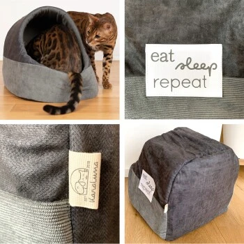 Die KaraLuna Kuschelhöhle ist ideal für Katzen, Kitten, kleine Hunde und Welpen. Unser Katzen Bettchen bzw. Hundebett ist 36 cm breit, 41 cm lang und 31 cm hoch. Der KaraLuna Katzen Schlafplatz ist daher auch für große Katzen geeignet. Die KaraLuna Katzenhöhle überzeugt durch einen schönen und modernen Stoffmix mit edlem Aufnäher. Die robusten und tierfreundlichen Materialien der Katzen Höhle halten auch verspielten Katzen stand. Dank der Anti-Rutsch Noppen hat das Katzenhaus Indoor einen stabilen Halt. Bei Bedarf lässt sich das eingelegte Kissen einfach herausnehmen und enthaaren oder mit der Hand waschen.
