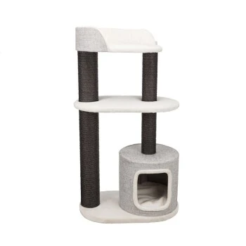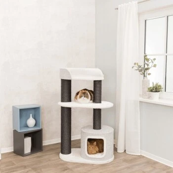 Durch die gedeckte Farbkombination aus weiß und grau passt der Trixie Kratzbaum XXL Cara in nahezu jede Wohnumgebung.