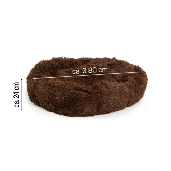 Hund und Katze finden hier ein gemütliches und gut gepolstertes Bett – der neue Lieblingsplatz in Ihrem Zuhause. Dank seiner runden Form ist dieses hochwertige Haustierbett ideal für Vierbeiner die es lieben, sich zusammenzurollen und einzukuscheln. Der erhöhte Rand schafft dabei ein Gefühl der Sicherheit. Der Boden mit Anti-Rutsch-Noppen sorgt für festen Bodenhalt und optimale Sicherheit. Das Kuschelkissen ist leicht und tragbar auch für unterwegs. Das Bett kann problemlos per Handwäsche gereinigt werden.